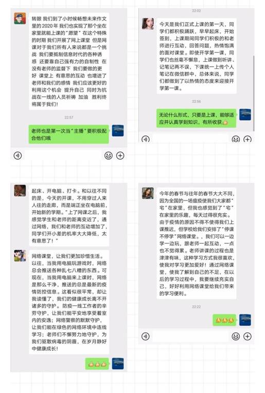 此次网上授课,无论是对于老师,还是对于学生,都是一次特殊的挑战。课后同学们纷纷表示网上授课能够更好的激发他们的学习兴趣,同时也更加贴近生活,对提高同学们自觉性,积极性都起到了促进作用。他们表示未来还会继续努力,以更加饱满的热情去迎接未来的学习生活。