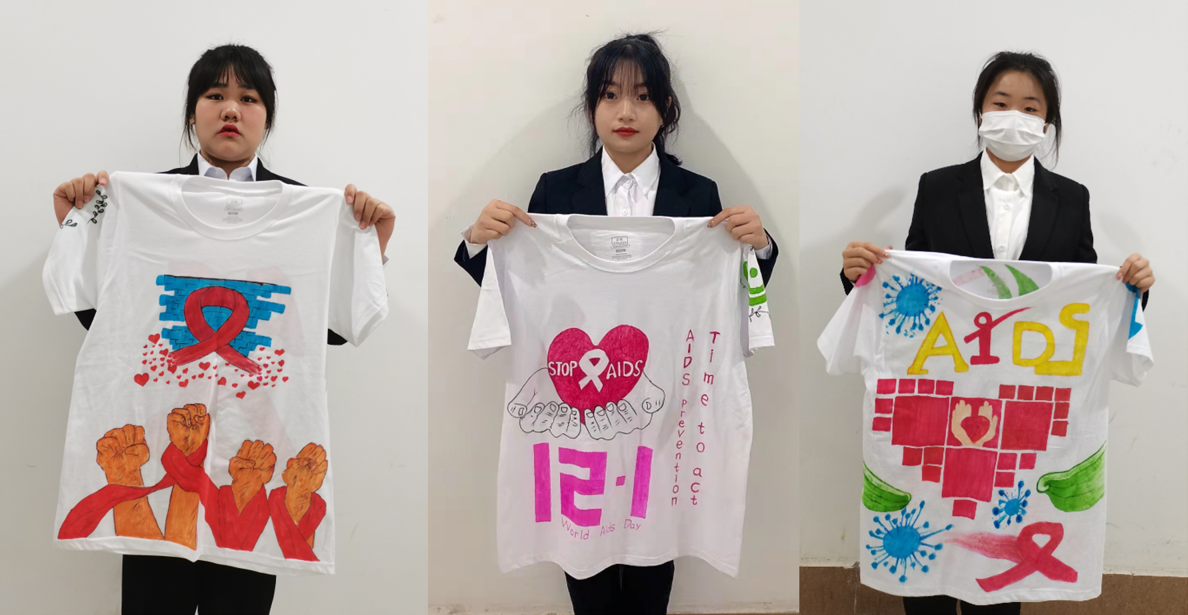 防艾宣传绘画活动中,分院以“生命至上、终结艾滋、健康平等”为主题,让学生们在文化衫上进行勾画,使学生们可以深刻感悟生命的珍贵,为终结艾滋病共同努力。文化衫彩绘活动采用绘画的方式表达对艾滋病人的关爱,也让选手充分享受创作的乐趣,形成双赢的结果。现场活动同学们积极参与,小组同学的合作沟通,思想创作的交流让人振奋,大家用心绘画,用行动在呼吁关爱艾滋病人。