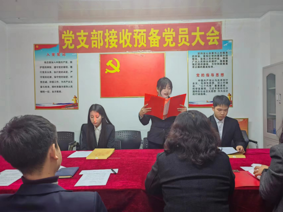 会议开始,发展对象逐一读《入党志愿书》,分别围绕个人在思想、学习和生活等方面的情况在大会上做了详细的报告。由入党介绍人介绍发展对象的基本情况,并就其在发展对象期间的表现,表明本人是否同意其发展为中共预备党员。随后进入支部正式党员表决环节。大会共发出选票4张,收回4张,有效票4张,废票0张4票同意,0票反对,0票弃权。经过无记名投票,党支部决议,同意接收姚东亮等3名发展对象成为中共预备党员。