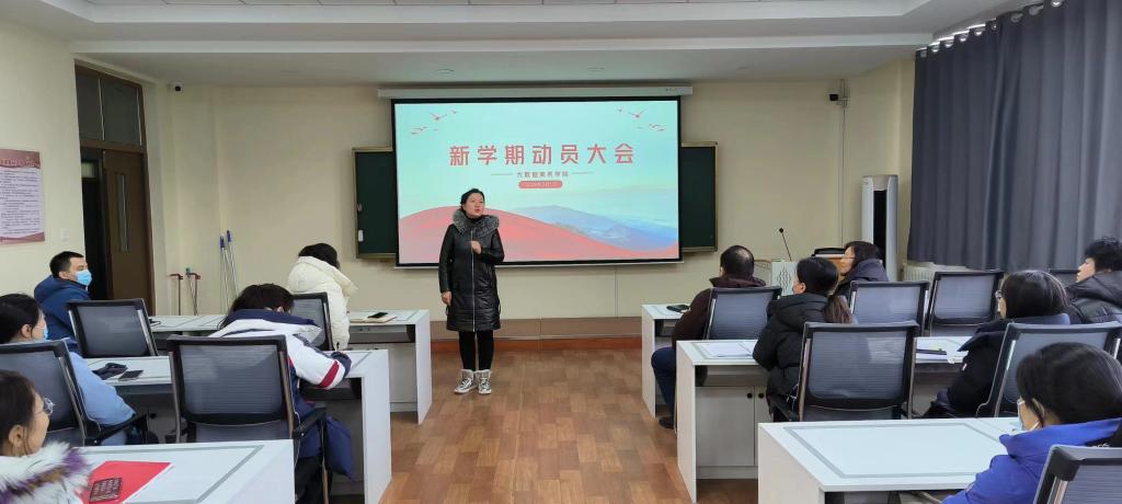 杨秀书记鼓舞全院教师在新年新学期勇攀新高峰完成新任务,并总结了新教师试讲情况,并要求大家不要松懈,持续钻研,争取早日成为骨干教师。