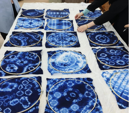 此次活动全体教师踊跃参与,现场气氛热烈。在手工艺设计——扎染体验环节,指导教师张瑛琪为教师们介绍“扎染古称扎缬、绞缬或染缬,是中国民间传统的染色工艺,以其独特的艺术魅力和文化价值被列入世界非物质文化遗产名录”并介绍了扎染工艺的基本知识、扎染特点和制作技巧,不同的扎法、不同的染料,每一次的碰撞都会带来意想不到的艺术效果。教师们亲手尝试扎染,深刻感受到非遗文化的独特魅力,参赛教师在体验和学习中了解和认知中国传统文化的博大精深,这次富有启发性的劳动实践活动激发了师生对传统文化的热爱和尊重,增强了其文化自信心和自豪感。