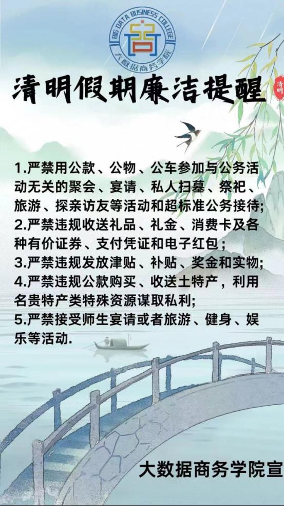 【廉政警钟长鸣】大数据商务学院党总支清明节廉洁提醒卡