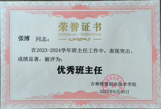 在张博老师的精心管理下,班级学风优良,同学们团结友爱、积极向上。众多学生在学业上取得优异成绩,在各类竞赛中斩获佳绩。他用自己的行动诠释了优秀班主任的责任与担当,成为学生们心中的良师益友,为大学教育事业树立了光辉的榜样。