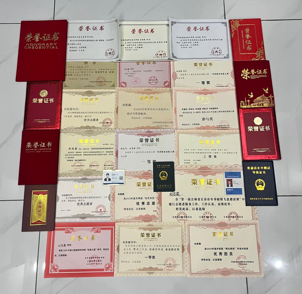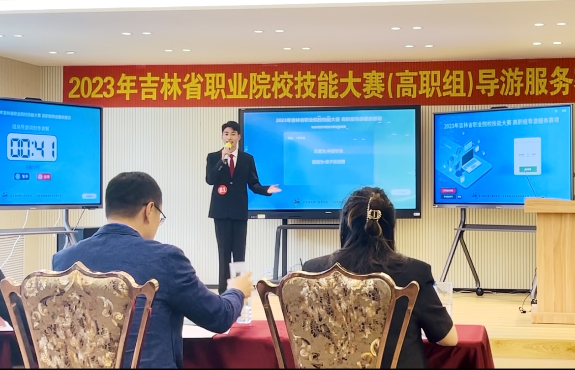 为了熟悉吉林省内的旅游线路,刘思霖在假期独自踏上旅途,亲身体验交通、住宿与景点详情。他也曾为了提升讲解的感染力,对着镜子反复练习表情与肢体语言。每一次比赛,都是对他知识储备与应变能力的考验。在这个过程中,刘思霖不仅提升了自己的技能,还成功考取了全国导游资格证书,逐渐成长为一名自信的“导游”。