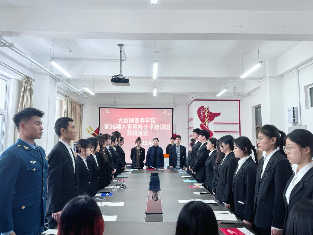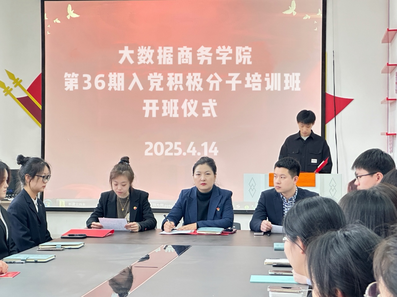 为加强入党积极分子队伍建设,提升思想觉悟和政治素养,2025年4月14日下午,大数据商务学院学生党支部在308党团活动室举行第36期入党积极分子培训开班仪式。本次培训以“坚定理想信念,争做时代先锋”为主题,旨在通过系统化学习引导学员端正入党动机,夯实理论基础。学生党支部书记张慧茹、于沛弘、王俐力老师及全体参训学员出席活动。