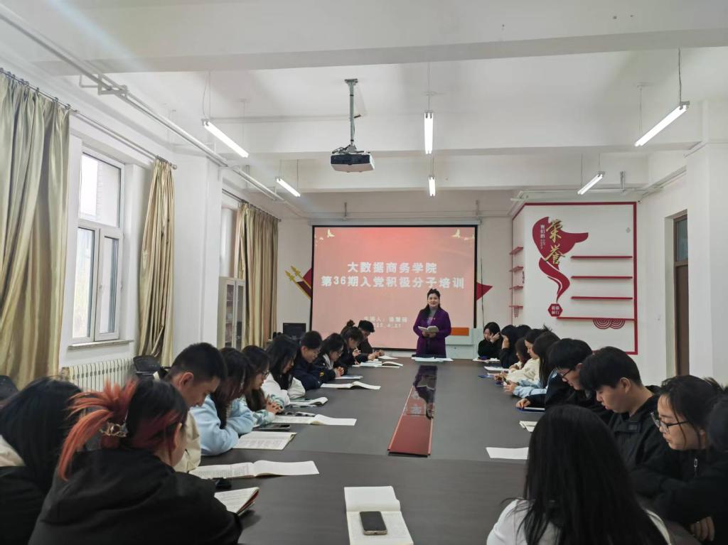 2025 年4月14日至4月24日,大数据商务学院党校第36期入党积极分子培训在学院党团活动室308顺利开展,并于4月25日下午圆满完成结业考试。本次培训由学生党支部书记张慧茹、支部党员教师于沛弘、王俐力担任授课教师,采用自学、集中授课与社会实践活动相结合的形式,为同学们带来了一次全面且深刻的学习体验。