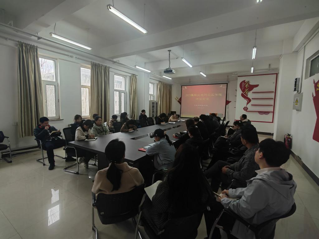 会议伊始,王雪岩院长传达了学校就业处关于 2025 届毕业生就业工作 “亮马” 比拼文件精神。她详细解读了文件中各项要求与目标,强调此次 “亮马” 比拼对于学院就业工作的重要意义,鼓励全体教师以更饱满的热情和更扎实的行动投入到毕业生就业指导与服务中。