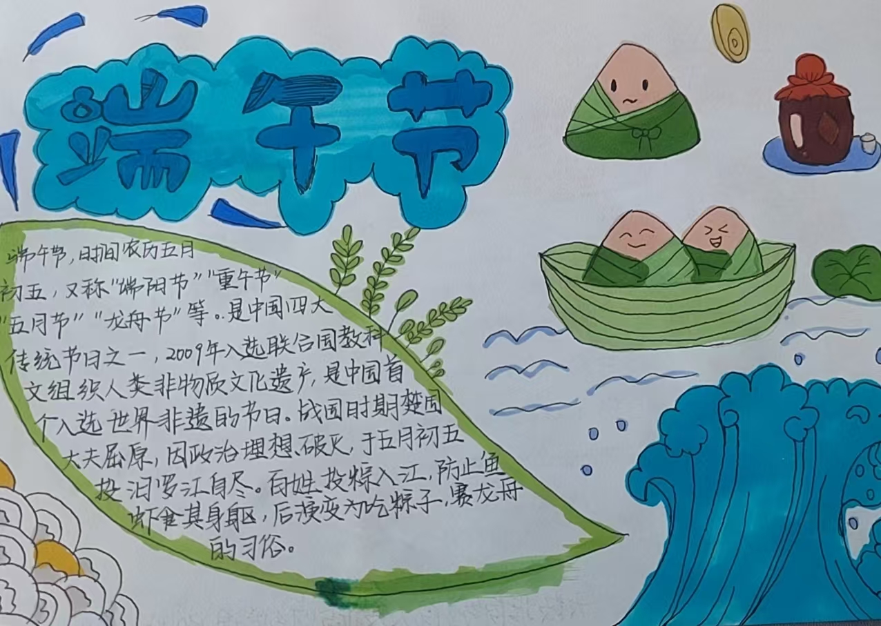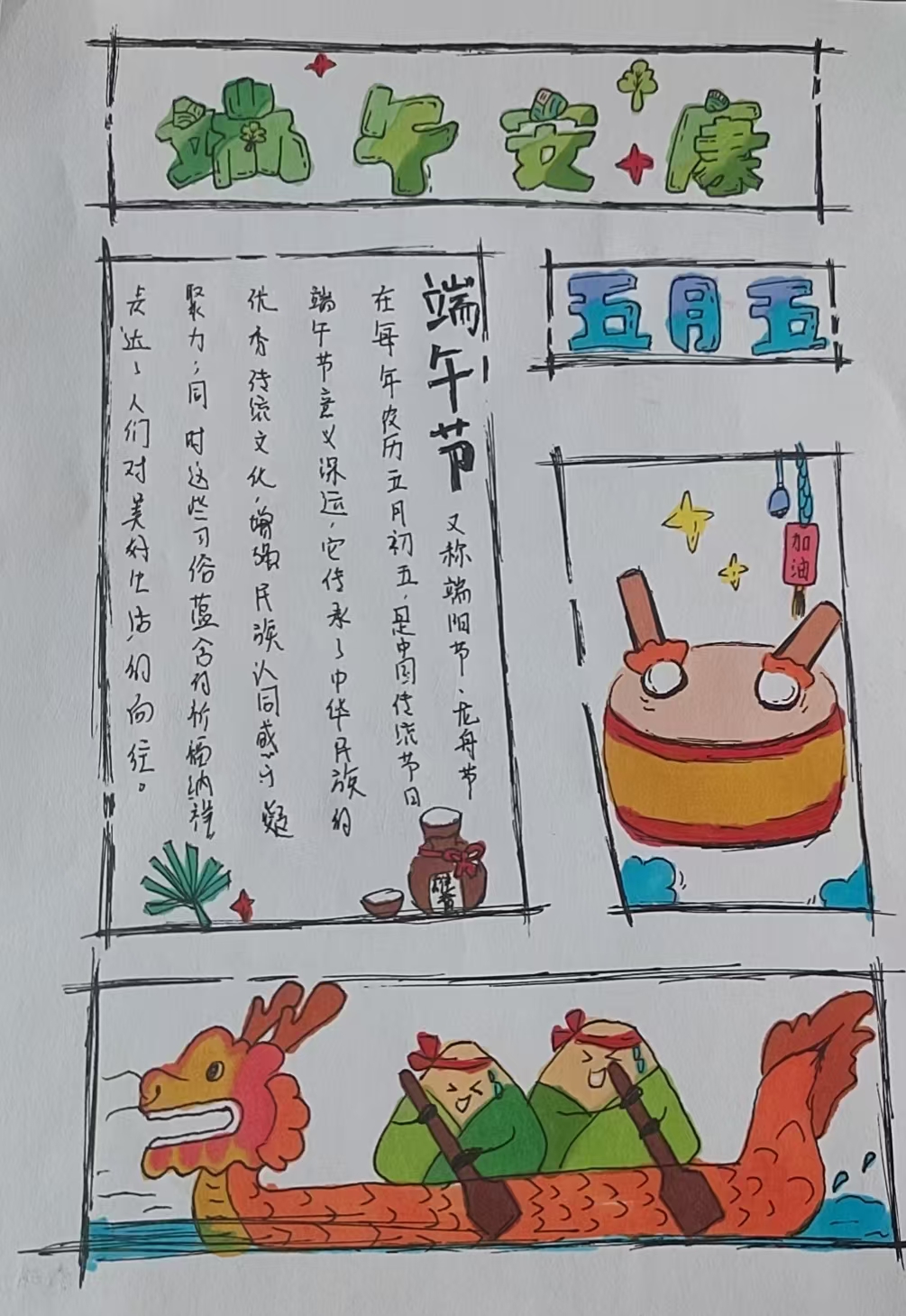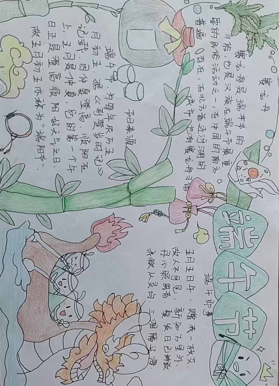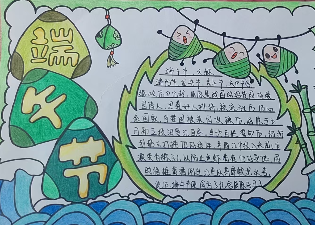 活动伊始,入党积极分子们围绕端午节的历史渊源、文化内涵、传统习俗等内容精心设计并绘制手抄报。他们用手中的画笔勾勒出对传统文化的理解与敬意,有的手抄报融入了屈原投江的故事,展现先贤的爱国情怀;有的着重描绘赛龙舟、包粽子的民俗场景,彰显节日的喜庆氛围;还有的将端午文化与红色文化相结合,表达对党和国家的热爱。一幅幅精美的手抄报,不仅体现了学生们对端午文化的深入理解,更彰显了他们积极向党组织靠拢的决心。
