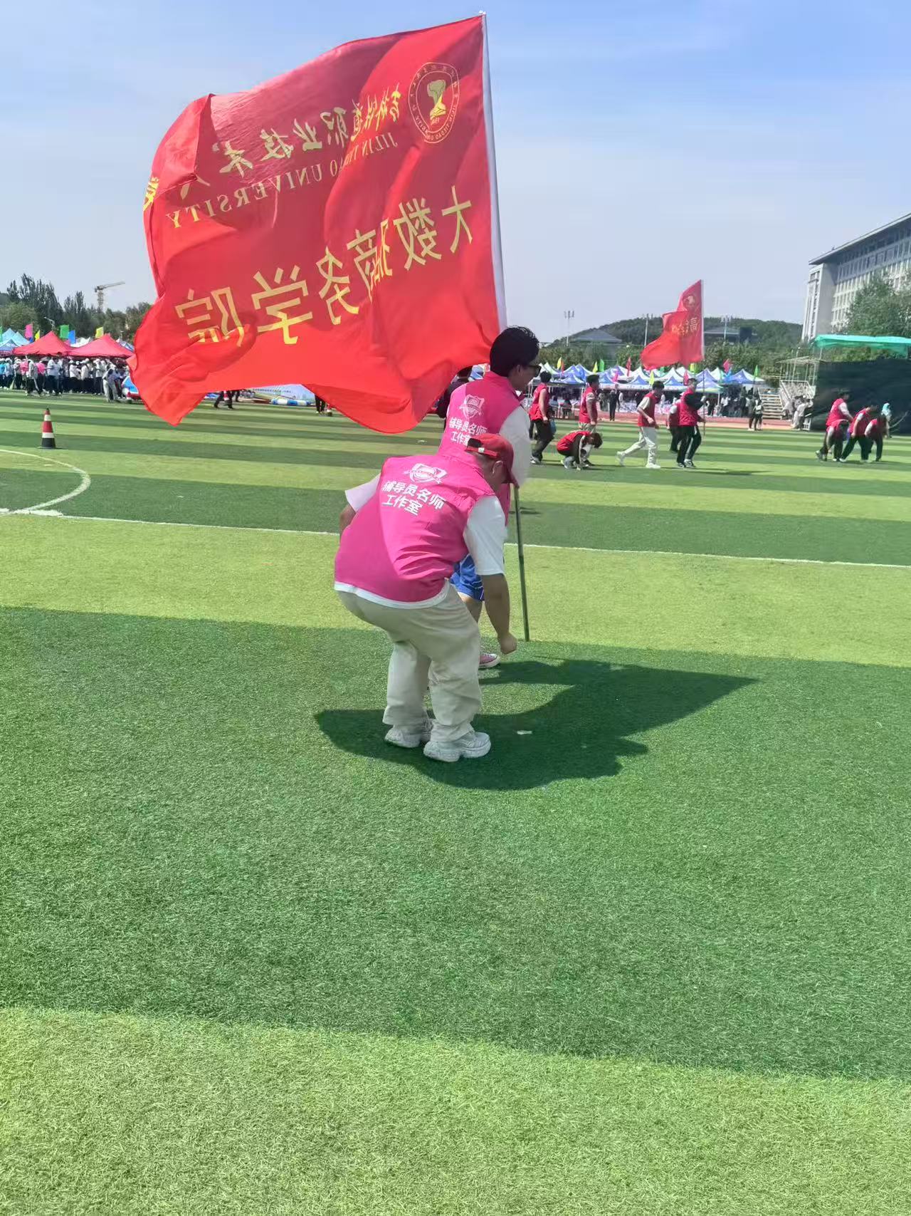 运动会期间,一群身着粉色马甲、手举学院大旗的学生志愿者格外引人注目。他们化身赛场环境守护者穿梭于赛场各个角落,运动会前他们认真清理操场垃圾,清洁并装饰看台栏杆,擦拭观众座椅。两天的运动会,他们有的穿梭于看台间捡拾垃圾,有的在跑道周边清理杂物,有的则负责分类整理废弃物。尽管运动会现场人流量大、垃圾产生速度快,但学生们始终保持着饱满的热情,用细致的行动维护着场地的干净整洁,为运动会营造了整洁舒适的环境。粉色马甲上醒目的工作室标识,彰显着他们的身份与使命,也成为了运动会一道亮丽的风景线。尽管天气炎热,清扫任务繁重,但志愿者们毫无怨言,秉持着对校园的热爱和对志愿服务的热情,坚守岗位,用实际行动诠释着奉献精神。学生们用汗水诠释责任,以行动践行担当,为运动会的顺利举办提供了有力的后勤保障,也为校园文明建设贡献了青春力量。