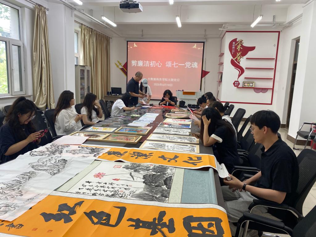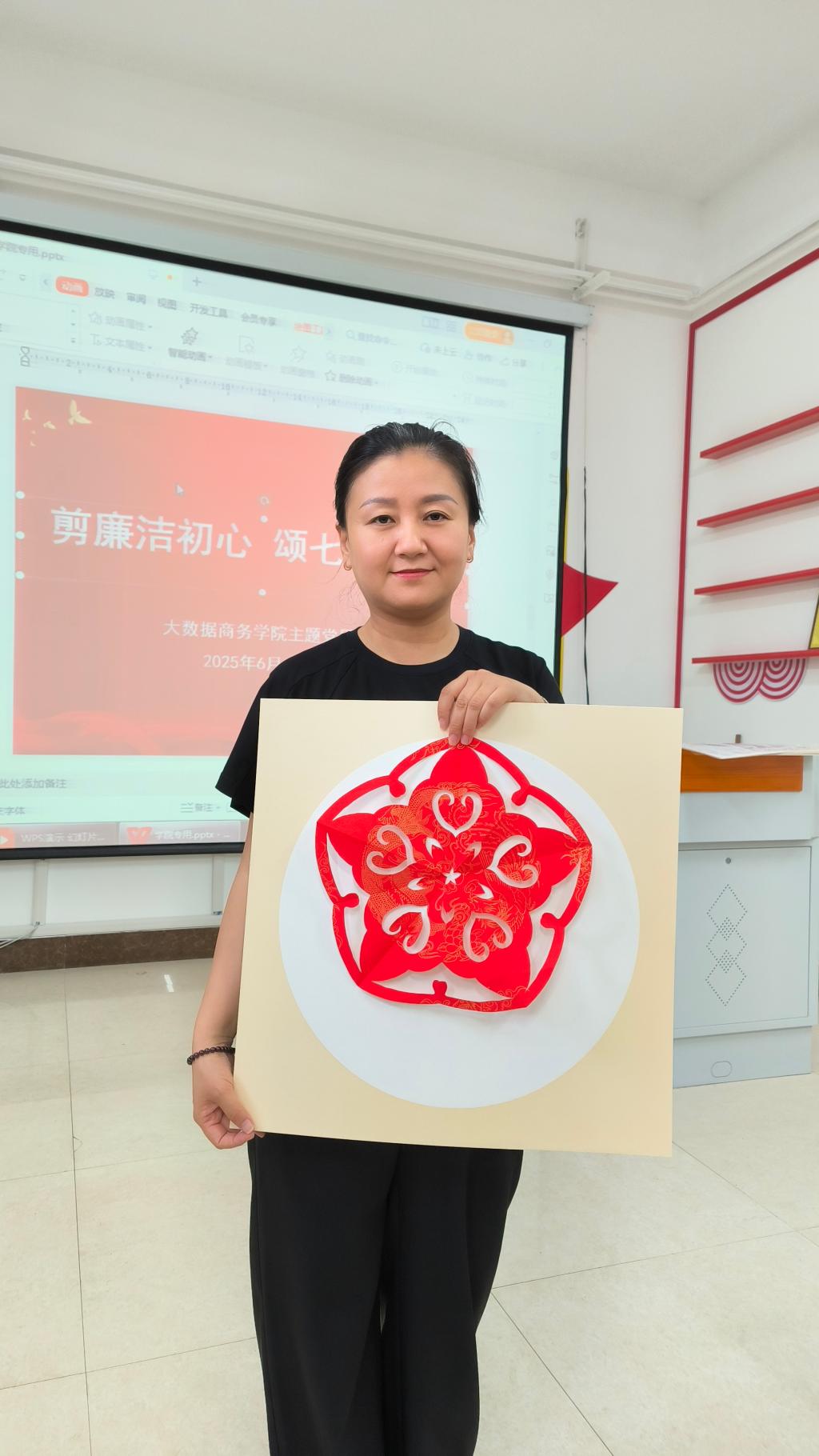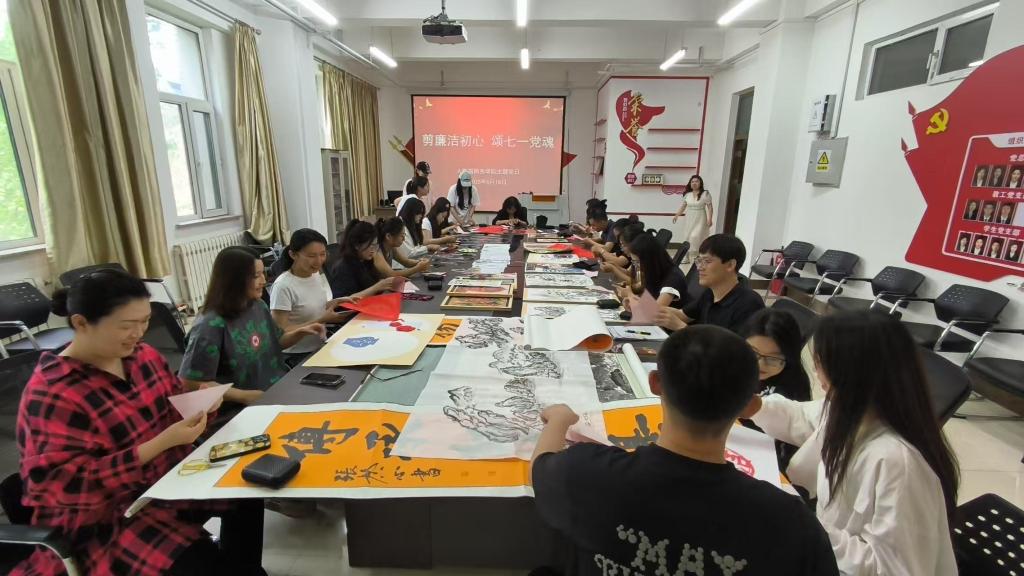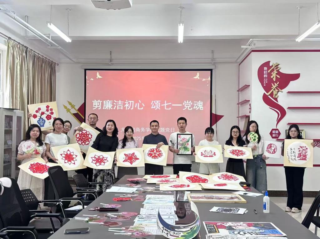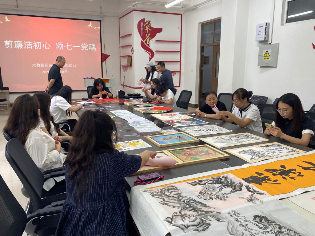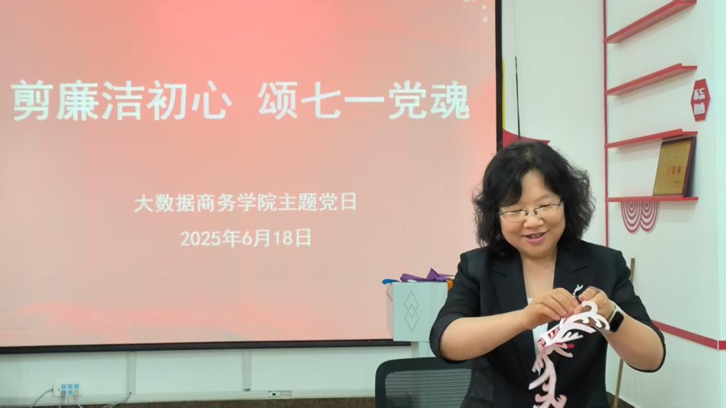 为庆祝中国共产党成立104周年,大数据商务学院党总支于2025年6月18日下午在308党团活动室成功举办 “七一” “剪廉洁初心 颂七一党魂”廉洁剪纸主题党日活动,全体教师党员齐聚一堂,以剪纸为媒,探寻廉洁文化之美。