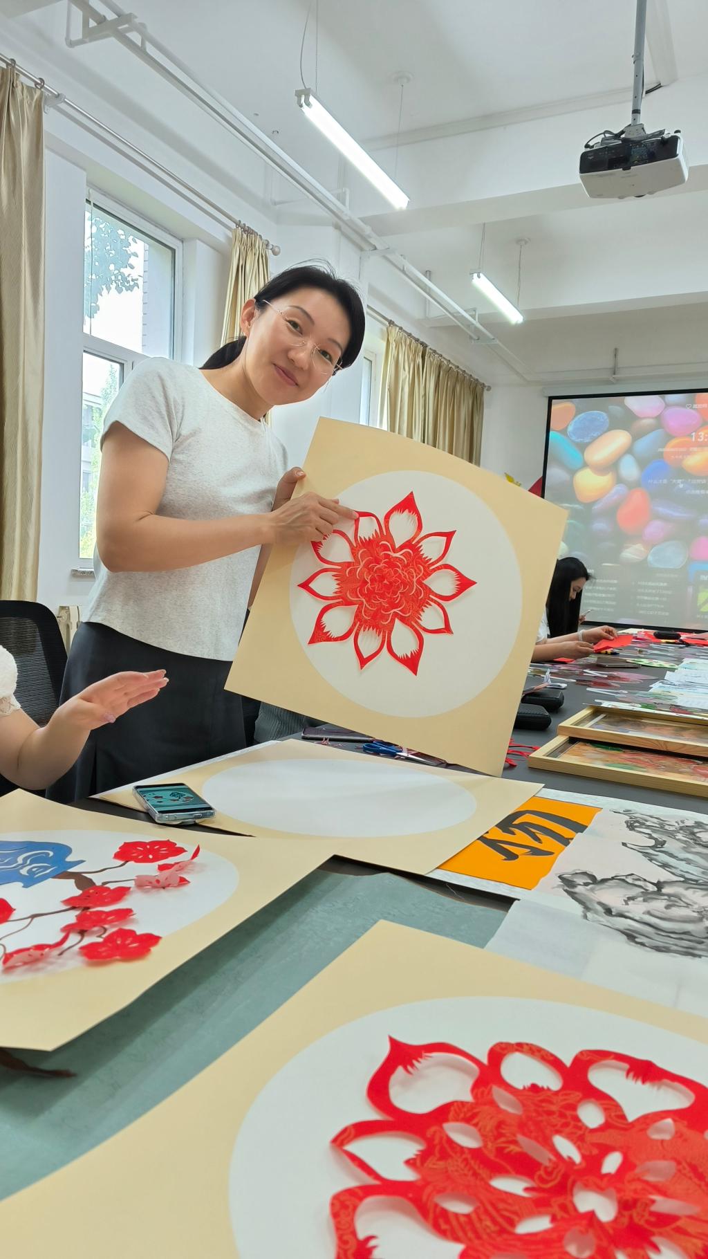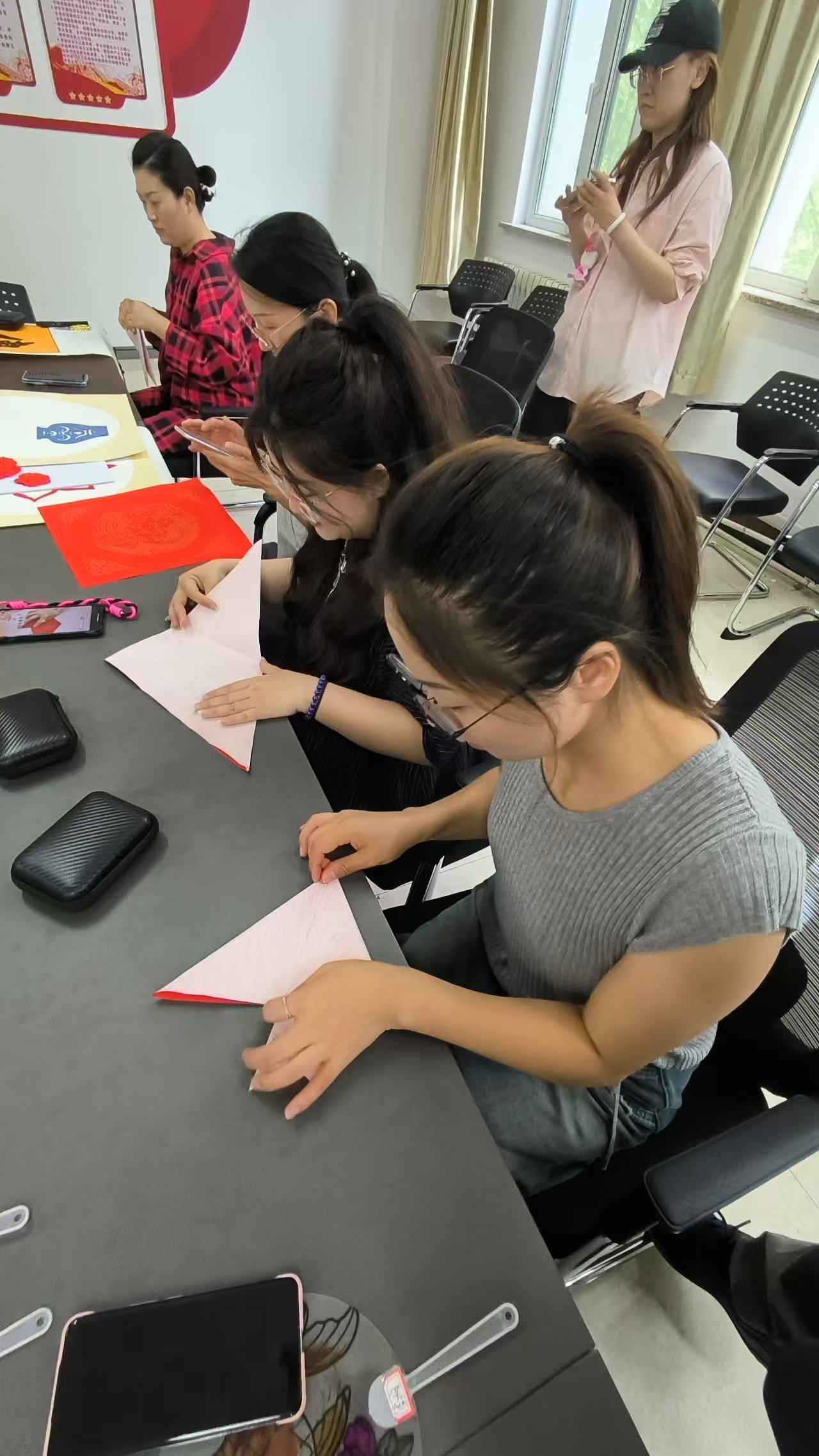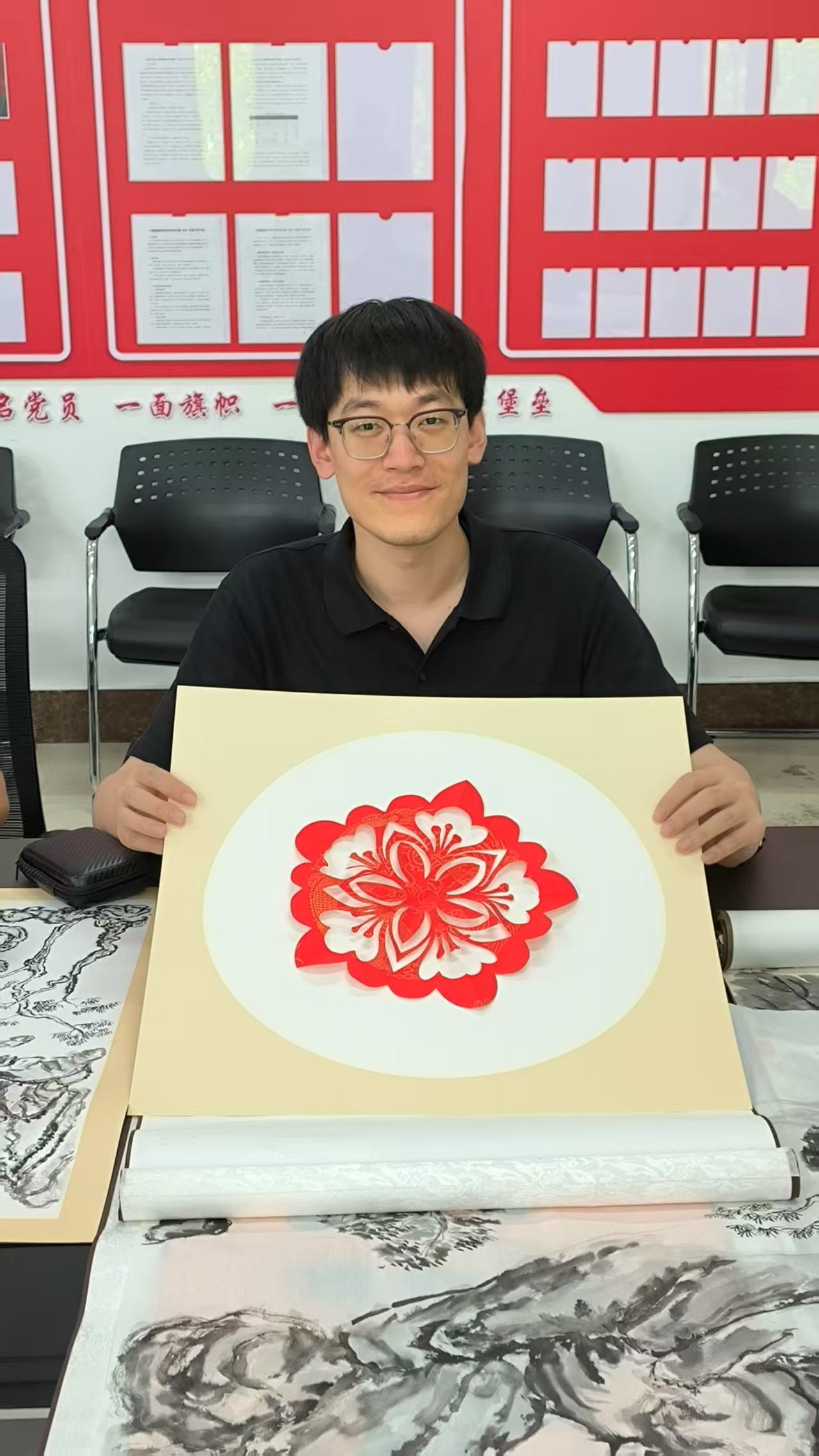 活动现场气氛热烈,党总支书记发表开场致辞,深刻阐述活动意义,强调廉洁文化建设重要性,号召党员积极投入。随后,剪纸指导老师详细讲解剪纸技巧与示范,展示廉洁主题剪纸作品,红色宣纸在剪刀下化作莲花、竹子等寓意清正廉洁图案,党员教师沉浸其中,汲取灵感。创作环节,教师们依据模板或自行设计,全神贯注投入剪纸创作,互相交流学习,分享对廉洁文化理解,指导老师巡回答疑解难,现场一片专注创作氛围。