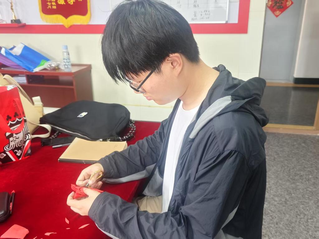 活动现场,氛围热烈而庄重。同学们手持剪刀,在红纸上精心雕琢,创作出一幅幅寓意深刻的廉洁主题剪纸作品。有的作品以莲花为主元素,象征清正廉洁;有的巧妙融入“廉”字,展现对廉洁理念的追求。在创作交流中,学生干部们深入探讨廉洁文化的内涵与意义,纷纷表示要从自身做起,把廉洁价值观念融入日常行为和未来职业规划中。学生干部代表李同学表示:“剪纸不仅是一门艺术,更是一次心灵的洗礼,通过这次活动,我们更加深刻理解了廉洁的重要性。”