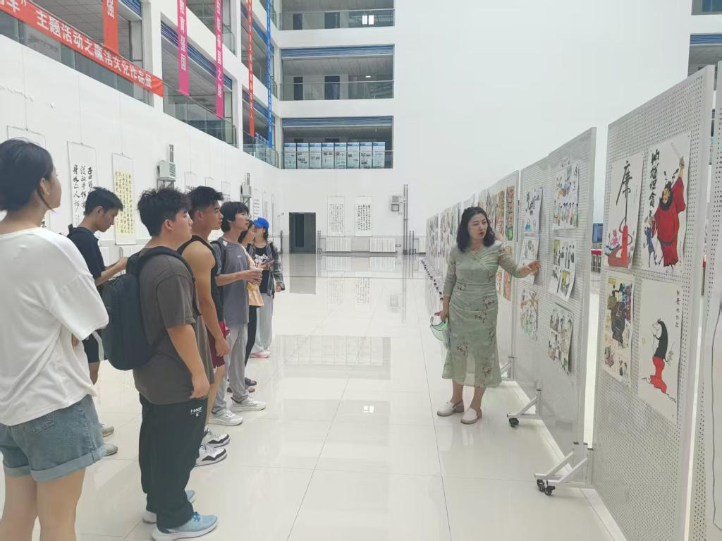 活动当日,在学生党支部书记张慧茹主持下,34 期、35 期、36 期入党积极分子齐聚展厅。现场展出的书法、绘画、手工艺品等作品,将廉洁元素与艺术创作巧妙融合,有的以水墨勾勒出高洁莲花,有的用文字传递清廉理念。不少师生惊喜发现自己的作品入选展出,倍感荣幸,纷纷驻足与作品合影留念。大家认真观展,在交流讨论中感悟廉洁文化的深刻内涵,接受思想洗礼,展厅内充满浓厚的学习氛围。