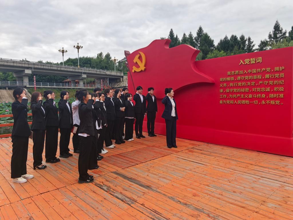 活动最后,全体人员来到学校莲花池边,面向党旗庄严举行入党宣誓仪式。铿锵有力的誓言回荡在池边,不仅强化了入党积极分子的身份认同感与责任使命感,更让大家在庄重氛围中坚定了传承红色基因、接续奋斗的决心。