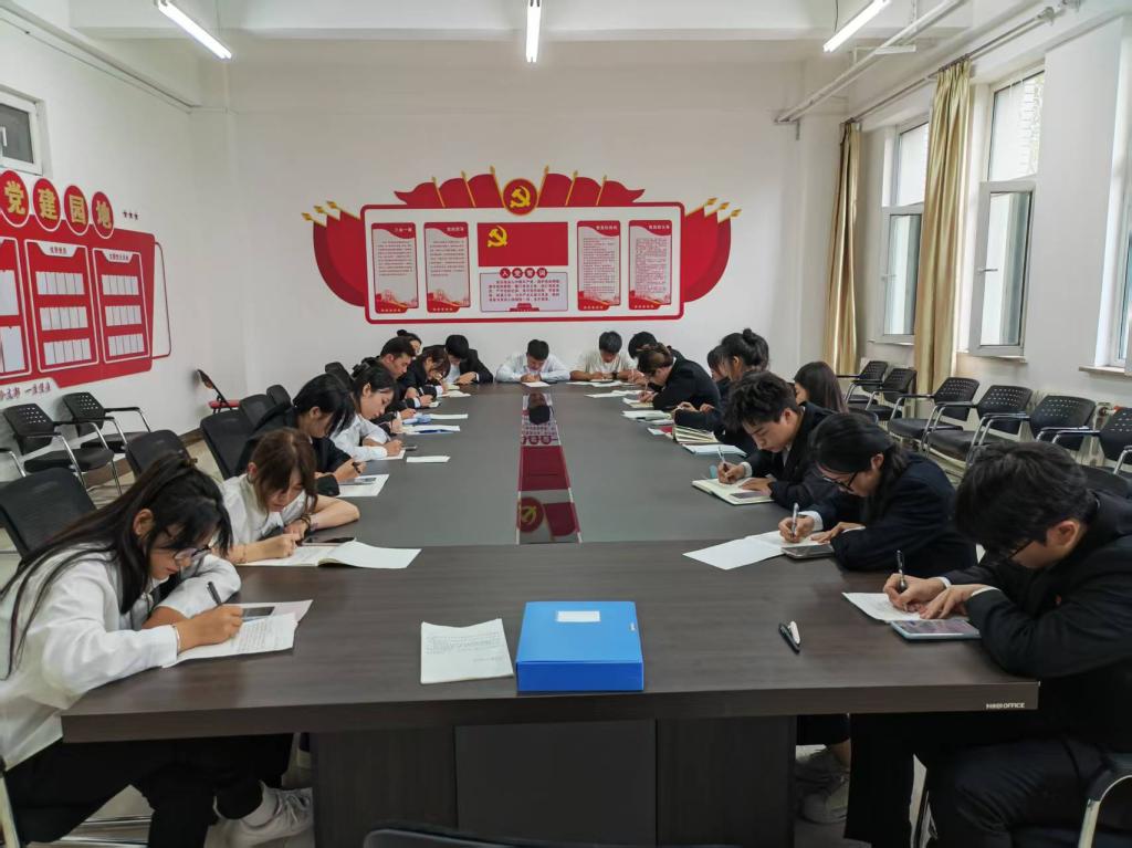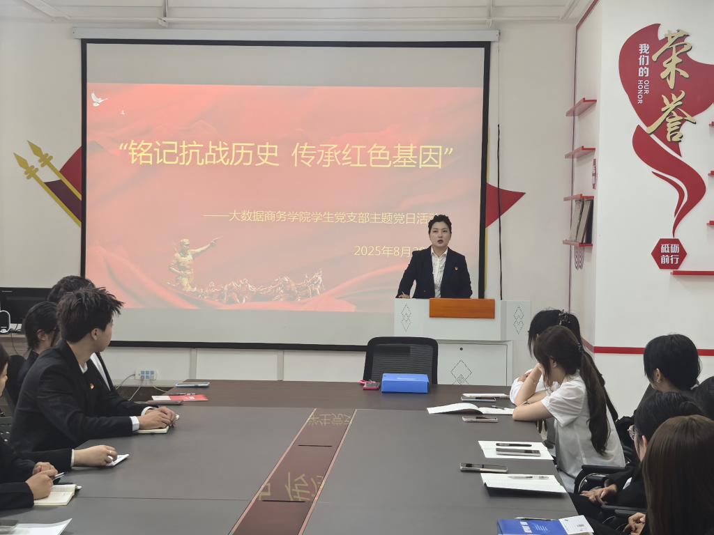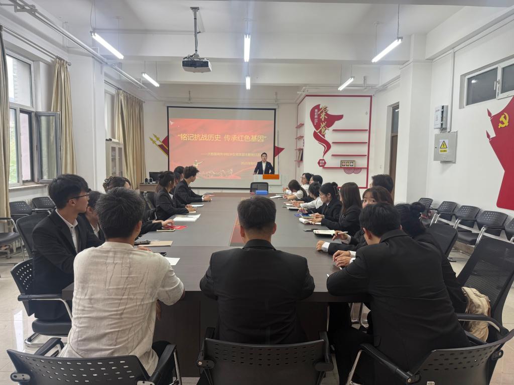 为纪念抗战胜利80周年,传承红色精神,2025年8月29日下午,学生党支部在308党团活动室组织开展“铭记抗战历史,传承红色基因”主题党日活动,在校学生入党积极分子代表积极参与,在沉浸式体验中感悟初心使命。本次活动由学生党支部书记张慧茹主持。