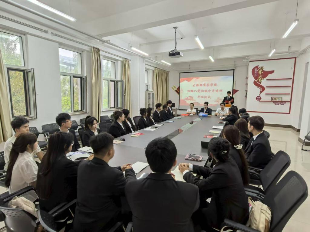 2025年8月29日下午,大数据商务学院党校第37期入党积极分子培训开班仪式在308党团活动室顺利举行。学院2名教师、28名学生入党积极分子参与此次活动,学生党支部书记及支部党员教师于沛弘、李娜出席仪式,仪式由学生刘海宇主持。