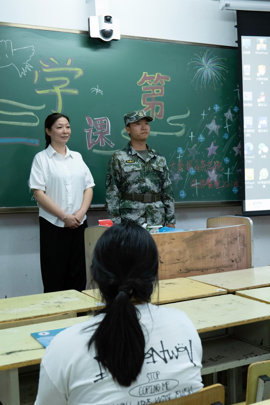 活动关键环节,学院党总支副书记、工作室负责人张慧茹走进各个新生班级,代表学院向新生正式引荐军训教官。她强调,军训是新生入学后的重要一课,不仅能锻炼体魄、磨砺意志,更能培养集体荣誉感与纪律意识,她要求全体新生以饱满的热情、端正的态度投入军训,严格遵守军训时间安排与纪律要求,服从教官指令,展现大数据商务学院新生的良好精神风貌。教官们也与新生亲切互动,简要介绍军训期间的训练内容与注意事项,让新生对即将到来的军训生活有了清晰认知。