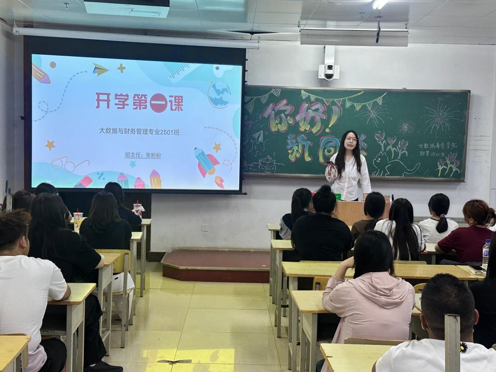 在圆满完成 2025 级新生迎接工作后,为帮助新生快速适应大学管理模式、明确学习生活规范,8月31日晚自习期间,大数据商务学院张慧茹辅导员名师工作室组织2025 级7个新生班级同步开展“开学第一课”活动。各班班主任全程主持,围绕新生在校核心需求与后续安排,开展多维度引导,为新生开启有序大学旅程筑牢基础。