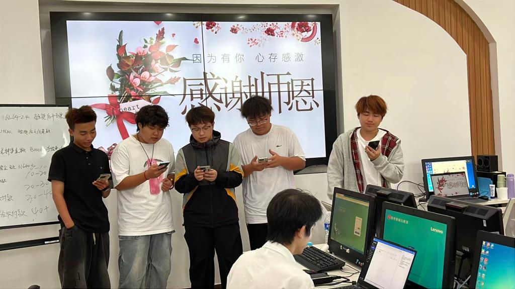 活动中,各班级结合自身特色精心策划,涌现出诸多充满创意的祝福形式。课堂间隙,多个班级学生以整齐响亮的集体口号向老师送上问候,“师恩似海,感谢有您”“祝老师工作顺利,笑容常在”等话语饱含真挚情感;同学们还发挥巧思,手工叠制色彩各异的贺卡,将心里话化作文字与图案,传递专属温暖;部分班级提前布置教室,用缤纷气球装点出温馨场景,配合精心设计的祝福PPT,通过画面与文字展现师生相处的点滴瞬间;活动最后,各班学生与老师亲切合影,定格下师生同框的美好时刻,多样形式让祝福既充满仪式感,又尽显青春活力。