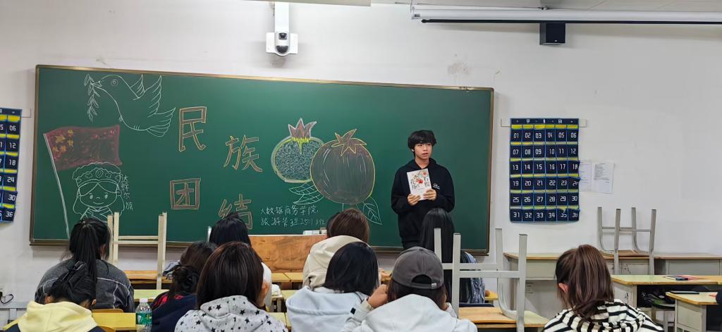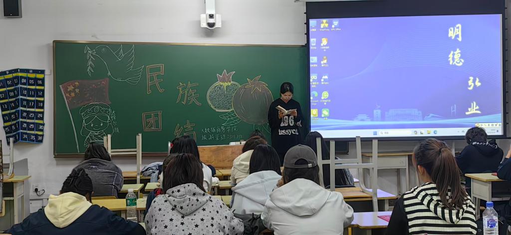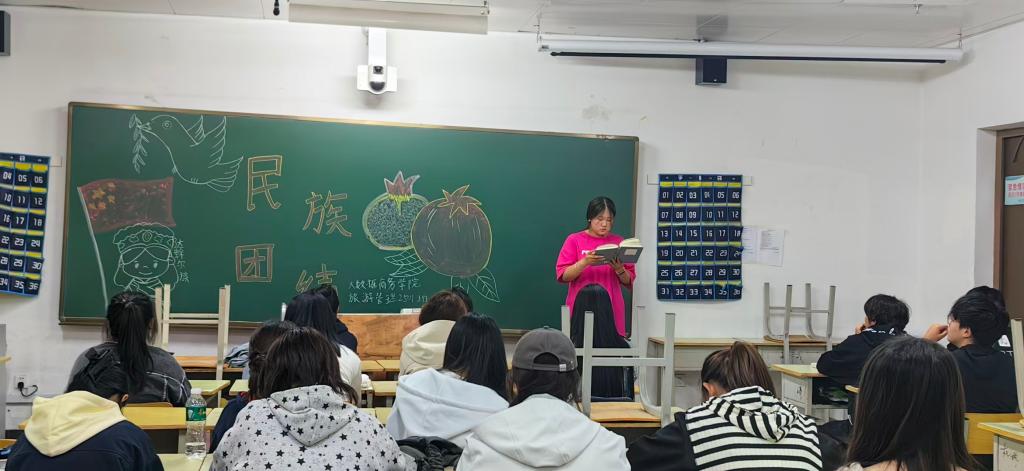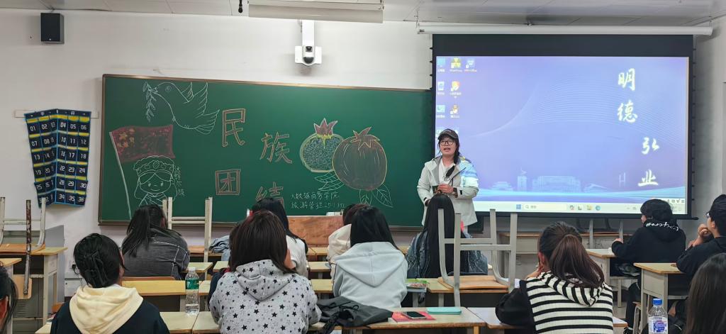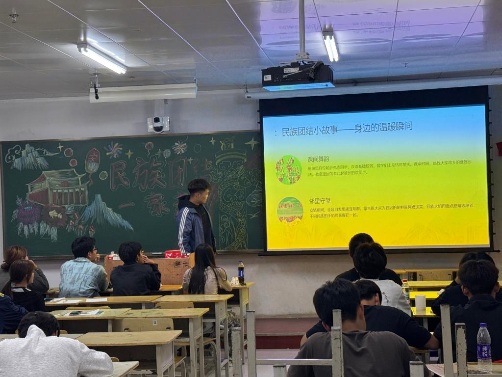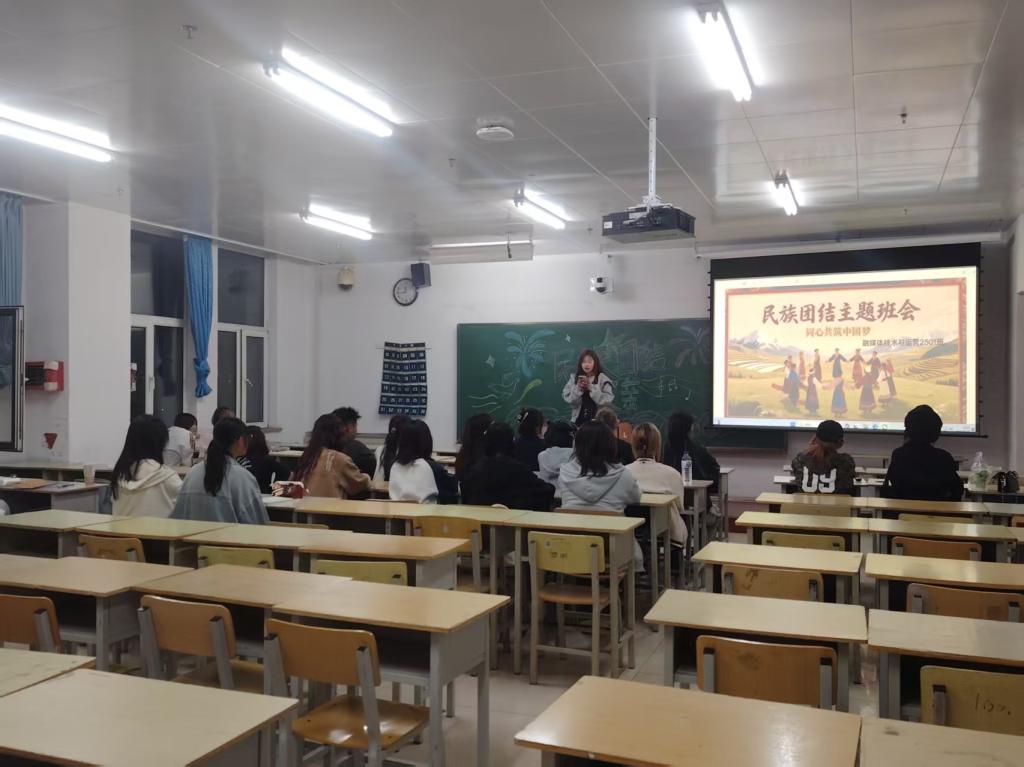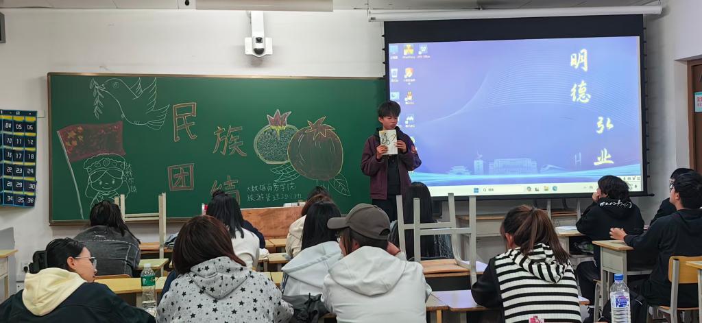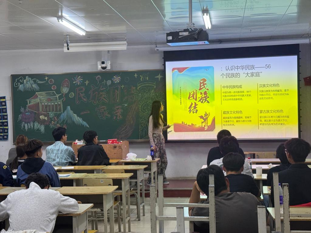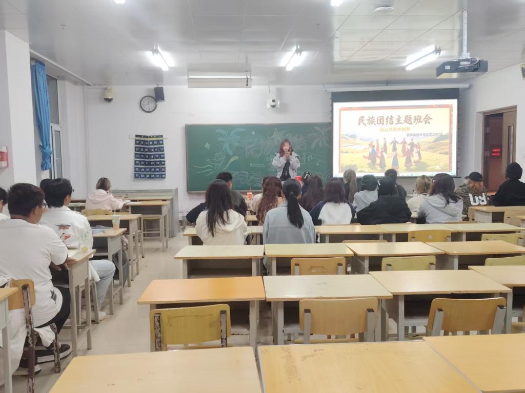 结合专业特色开展“民族团结教育主题班会”是此次活动的亮点之一。会计专业班级围绕“诚信记账守初心,民族团结显担当”展开讨论,引导学生将专业素养与民族团结精神相结合;旅游管理专业班级通过分享“民族地区特色旅游发展案例”,展现多民族文化交融对区域经济发展的推动作用;数字媒体艺术设计专业班级则以“设计民族团结主题海报”为载体,用创意作品诠释对“中华民族共同体”的理解,实现专业教育与思政教育的有机融合。