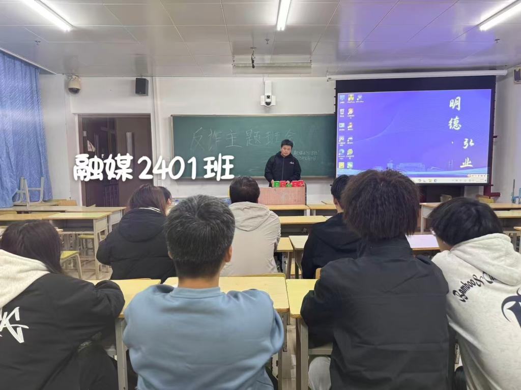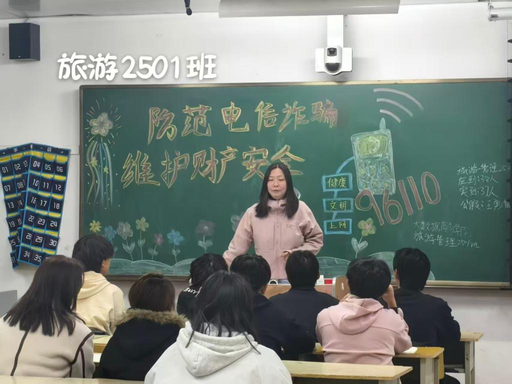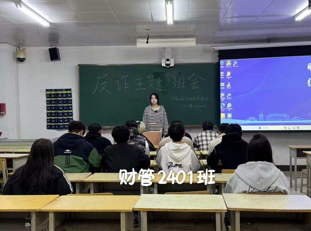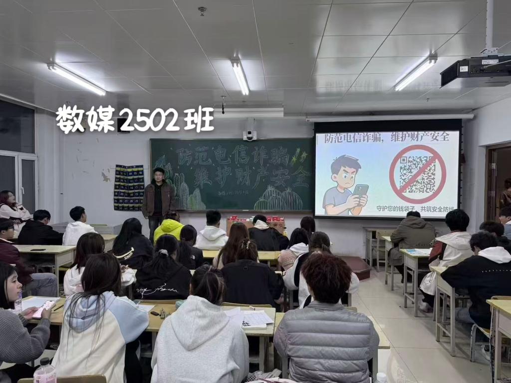 2025年10月15日晚自习期间,大数据商务学院辅导员名师工作室组织在校大一、大二、大三三个年级全体学生,以班级为单位在各班晚自习教室集中开展反诈主题班会。此次活动旨在提升学生防范电信网络诈骗的意识和能力,筑牢校园反诈安全防线,是学院安全教育系列工作的重要组成部分。