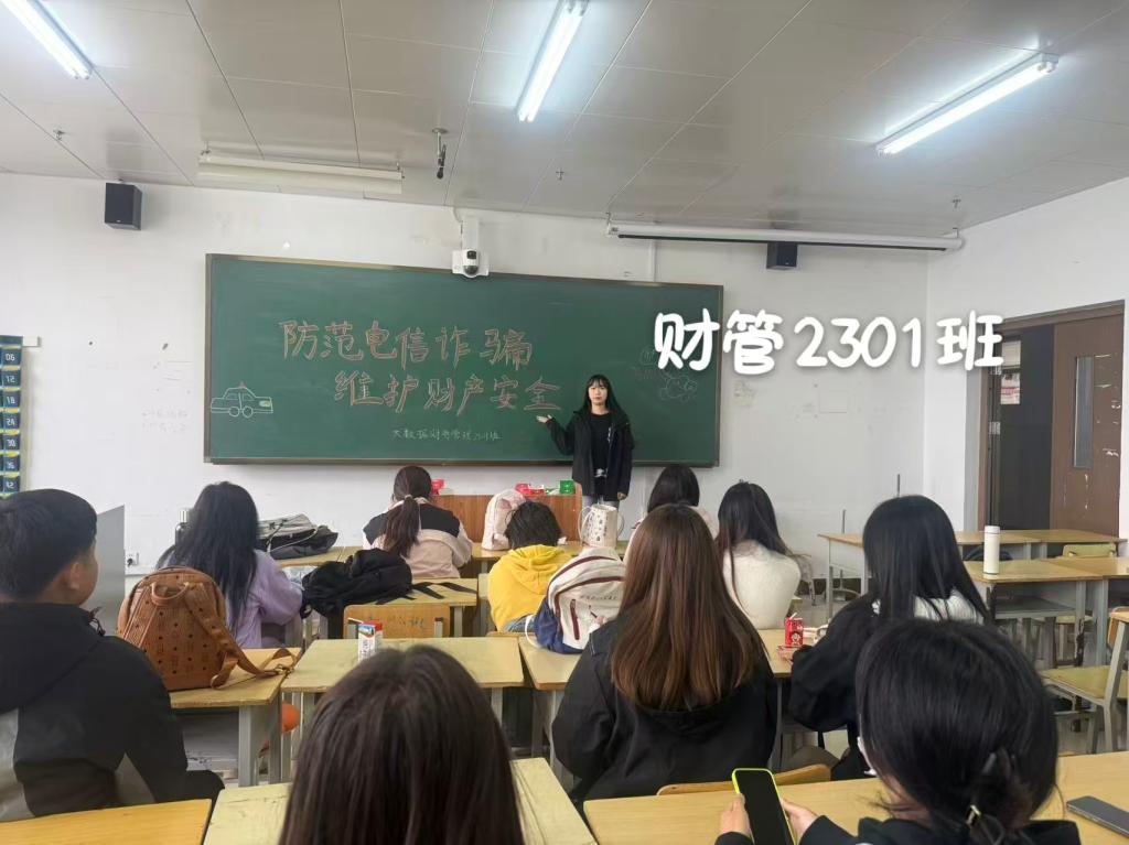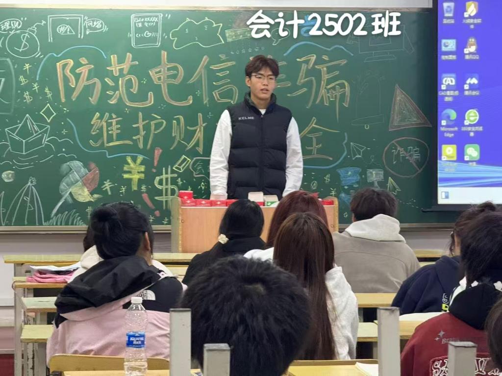 班会采用 “班长领学 + 视频科普 + 案例分析” 的形式推进。各班级班长率先结合校园常见诈骗类型,领学反诈法律法规与防范要点;随后组织学生观看反诈科普视频,直观了解刷单返利、虚假购物、冒充客服等诈骗手段的最新套路;最后通过剖析高校学生被骗的典型案例,让学生深刻认识到诈骗的危害性。过程中,学生们积极互动,分享身边遇到的疑似诈骗经历,进一步强化了防范认知。