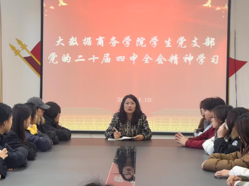 2025年11月10日中午,大数据商务学院学生党支部在308会议室开展“学习党的二十届四中全会精神”主题党日活动,支部全体教师党员及34期、35期、36期、37期入党积极分子齐聚一堂,以理论学习与实践感悟相结合的方式,深学细悟全会精神。