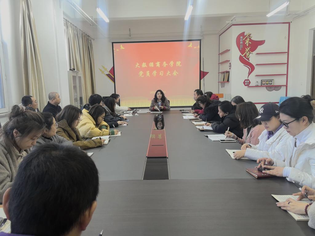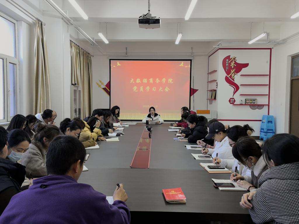 2025年11月19日下午,大数据商务学院党总支在 308 党团活动室召开党员大会,全体党员教师及入党积极分子参加会议,学院党总支副书记张慧茹主持会议并领学相关重要内容。
