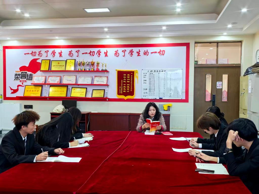 2025年11月19日下午,大数据商务学院学生党支部在一实训楼313教室,为第35期发展对象培训班的6名发展对象召开党的二十届四中全会精神集中学习会。本次学习会由学生党支部书记主持并领学,旨在引导发展对象深化对全会精神的理解,强化党性修养,为早日成为合格党员筑牢思想根基。