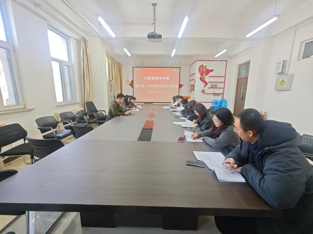 2025年11月28日下午,大数据商务学院在308会议室召开十四、十五周班主任例会,学院党总支副书记、学工办主任、团委书记及三个年级班主任全员参会,会议围绕近期学生工作重点展开部署。