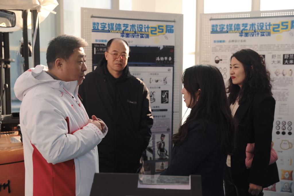 本次展览期间邀请全体校领导到场参观点评,学校党委书记陈煜平围绕“行业需求与思政素养培养”为学生提供指导意见,校长曹炳志从专业技能、思政融入等维度给出中肯意见,学校教务处、产教融合研究院、马克思主义学院、公共教学研究院、基础部、美育劳育教学研究院等领导和教师到现场参观,对育人成果给予充分肯定并提出宝贵意见。