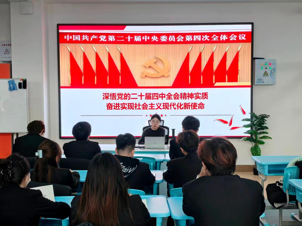为推动党的二十届四中全会精神在青年学子中落地生根,引导青年群体坚定理想信念、勇担时代使命,2025年12月10日下午,大数据商务学院学生党支部在一实训楼501教室举办专题宣讲会。学院特别邀请马克思主义学院朱冬琦老师主讲,学生党支部党员教师、学生预备党员、34-37期入党积极分子及2025级班长团支书齐聚一堂,共同学习领会全会精神核心要义。