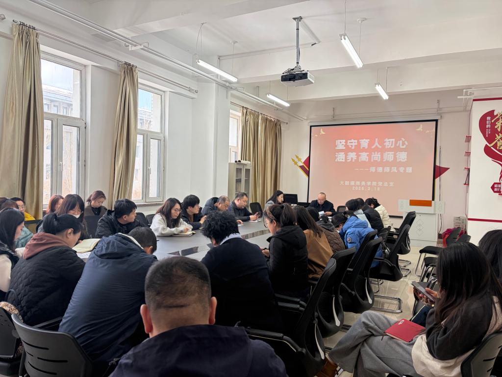 铸魂育人守初心 正风立德强担当 为深入学习贯彻习近平总书记关于师德师风的重要论述,切实加强学院教师思想政治和师德师风建设,营造风清气正的育人环境,3月18日,大数据商务学院党总支于308党团活动室开展师德师风主题党日活动,学院全体党员参加本次活动,活动由党总支书记于国军主持。