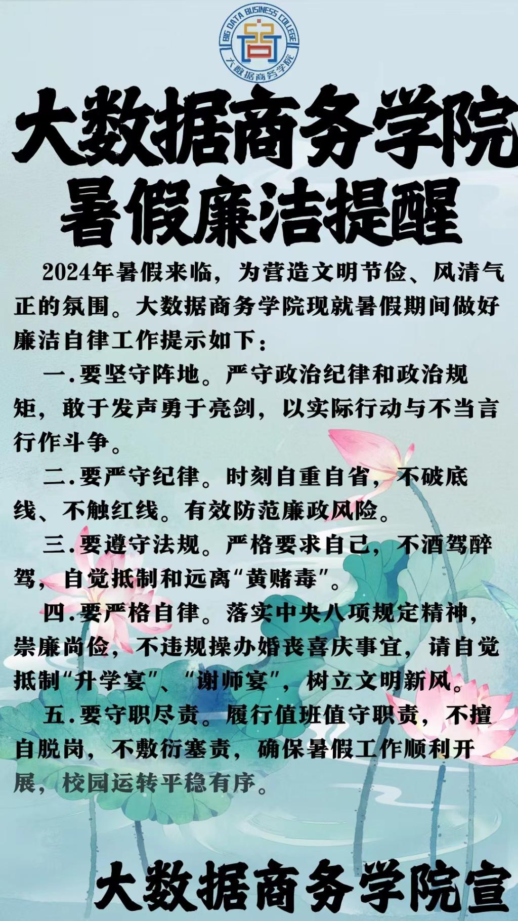 【廉政警钟长鸣】大数据商务学院2024年暑假廉洁提醒